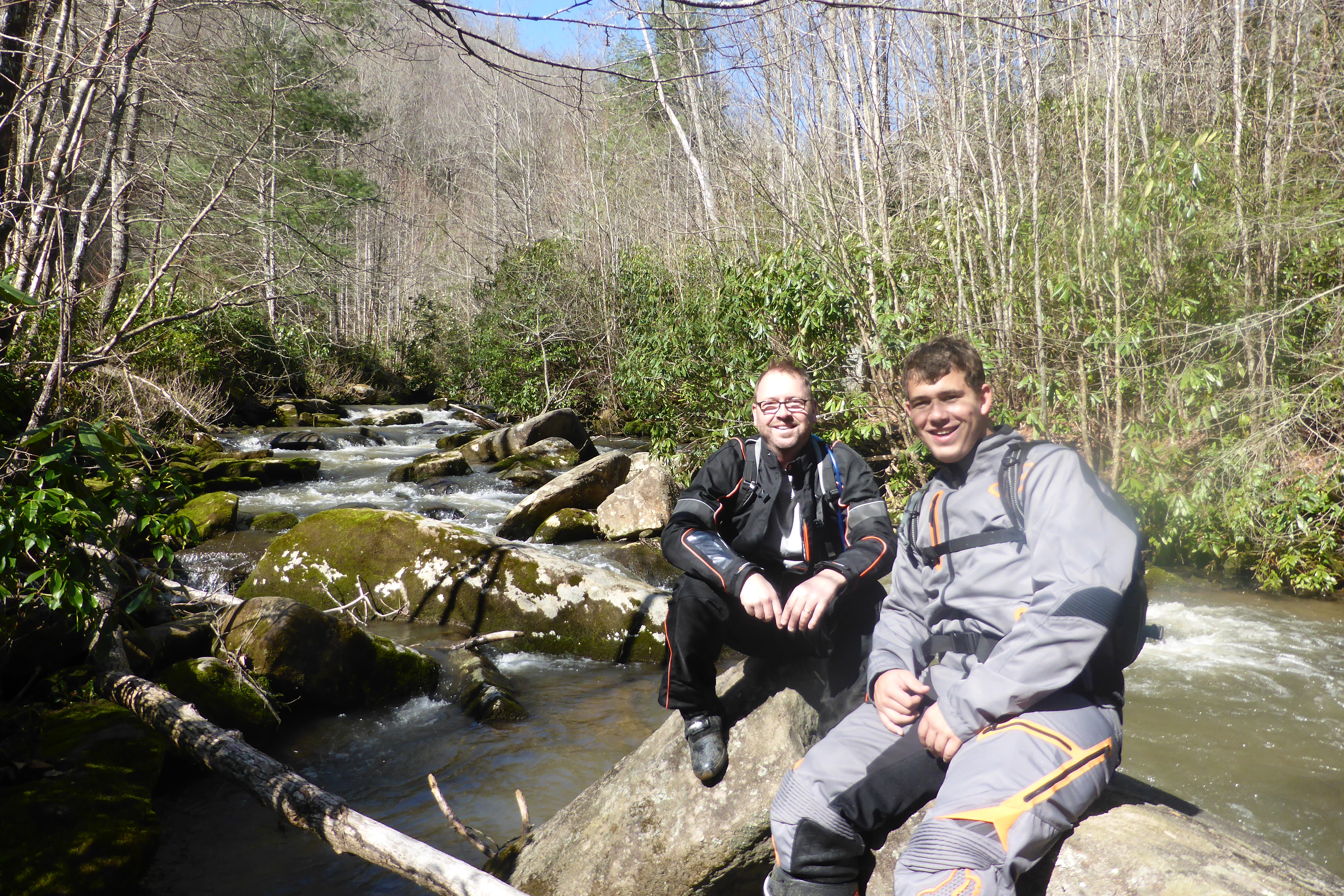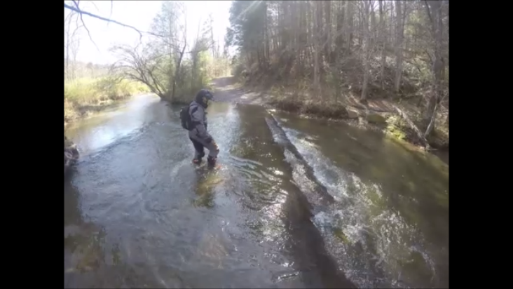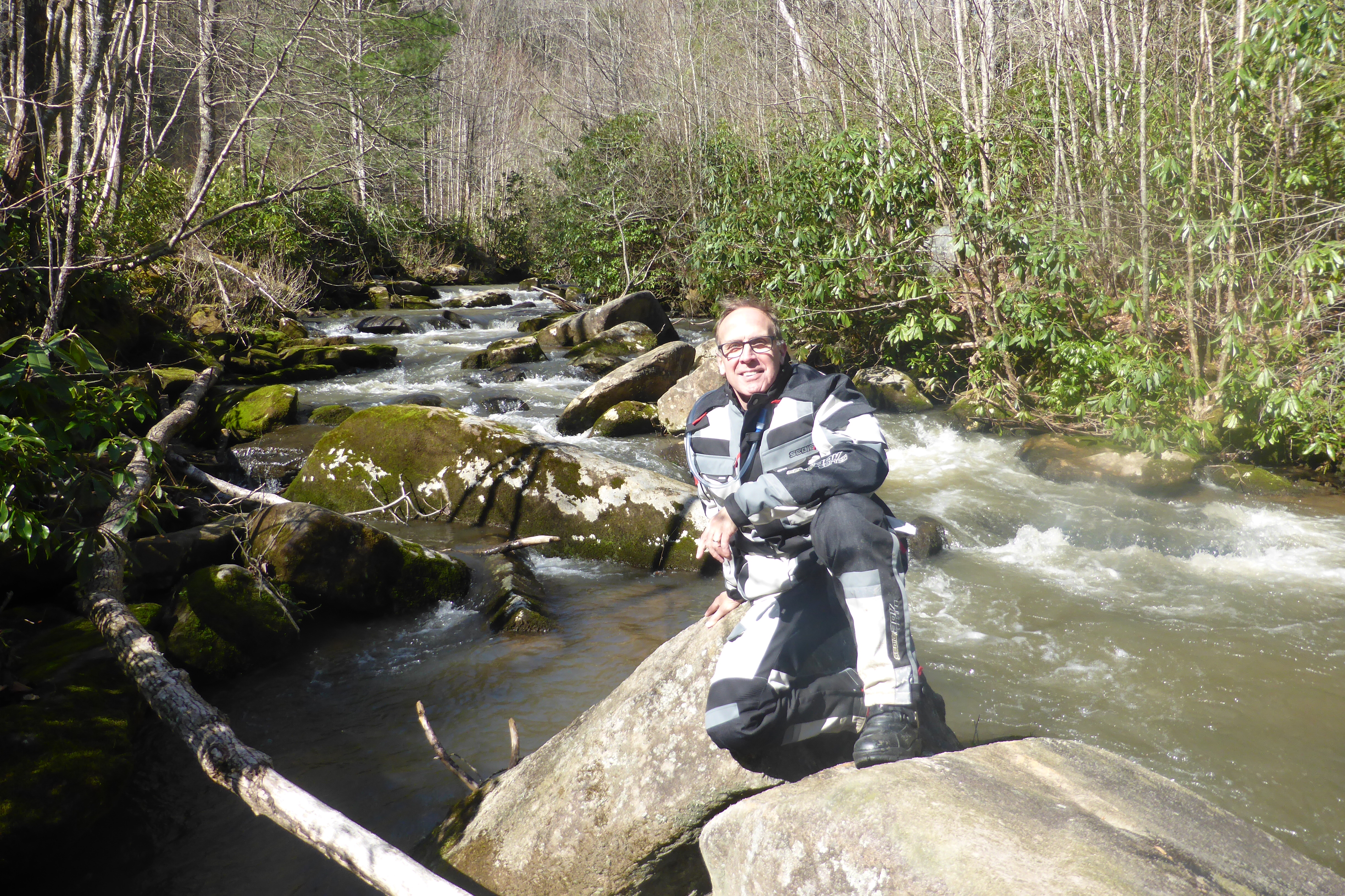 Next came the real fun. Between Tellico Plains and the Hiwassee Rec Area we crossed four creeks. Typically, these creeks would be 3″ to 6″ deep. But due to Friday night’s thunderstorms the rivers were high and fast.