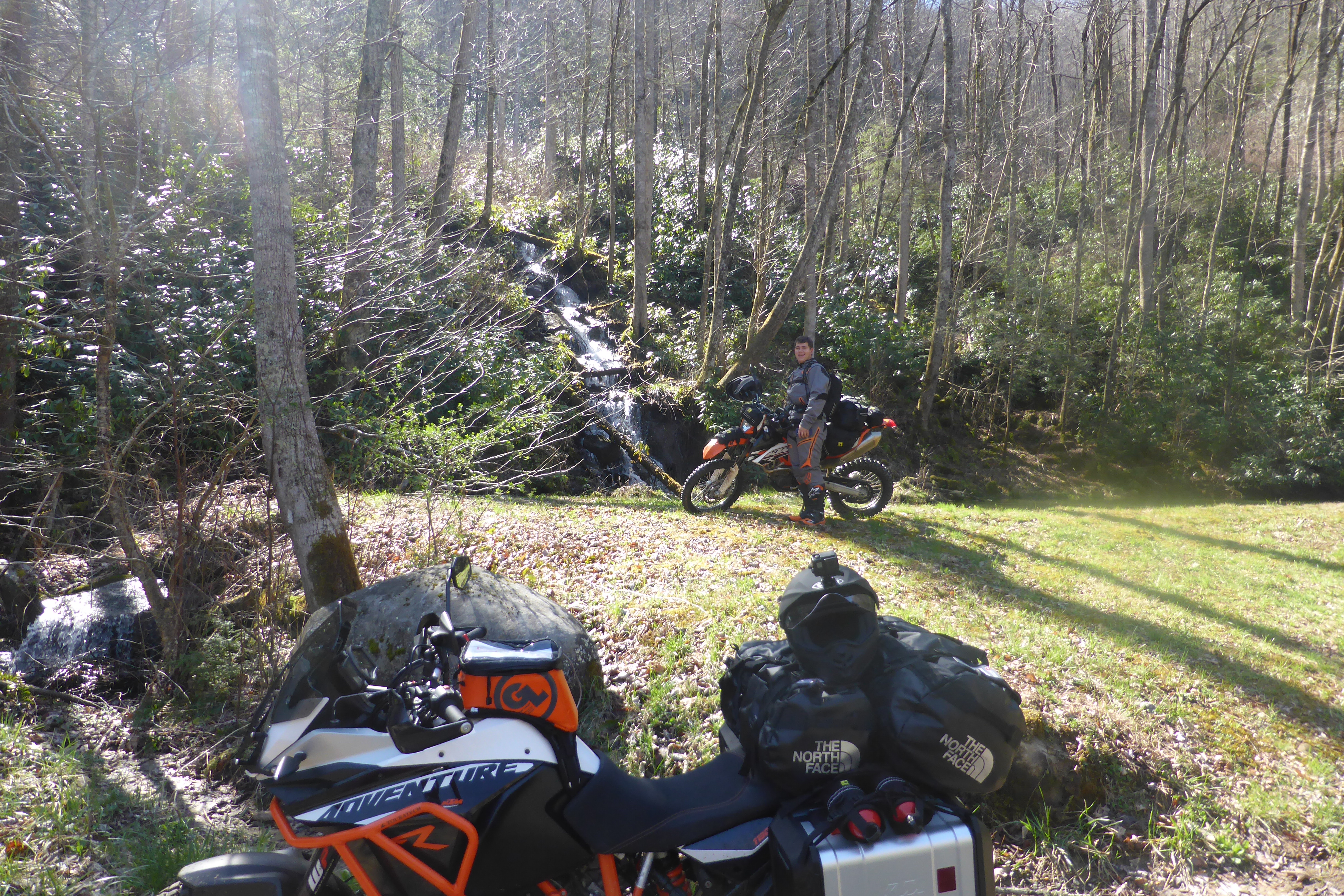The TAT trailhead is just about 2.5 miles from our hotel, so it didn’t take long to get started… Our first leg would be from Andrews to Tellico Plains, TN. It was a beautiful piece Western North Carolina mountains and Cherokee National Forest of Tennessee. This first leg would be a series of Forest Service roads that were better than we had hoped. It was absolutely perfect riding…